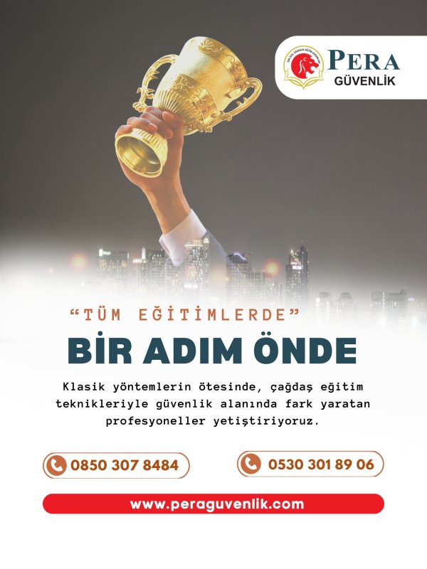Pera Güvenlik, özel güvenlik hizmetleri ve profesyonel güvenlik eğitimleri alanında faaliyet gösteren güçlü ve güvenilir bir kuruluştur. Kurulduğu günden itibaren kaliteyi, disiplini ve müşteri memnuniyetini ön planda tutarak bireylerin ve kurumların ihtiyaçlarına en uygun güvenlik çözümlerini sunmaktadır.